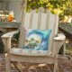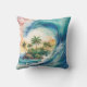 Ondas de aquarela quebrantes revelam uma bela palma de ilha tropical com palmeiras. Há várias versões deste design.