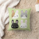 4 raças diferentes de coelhos bonitinhos num fundo verde para Primavera e Páscoa. O reverso tem um padrão repetido.