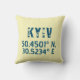 design de travesseiro decorativo com as coordenadas latitude e longitude de Kiev, Ucrânia com uma fonte azul escura e angustiada.