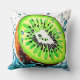 Uma imagem vibrante e refrescante de uma fatia de kiwi esparramando água, mostrando seu interior suculento e sua cor verde vibrante (Esta Design feita com IA). Faça a ordem hoje e encare a alegria de Comprar!