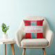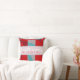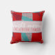 Travesseiro de Natal brilhante e feliz do Knit Vermelho. Travesseiro de Natal com design de tricô em cores vermelha e azul. Personalize o nome da família e faça uma boa manutenção ou um presente para sua família ou amigos.