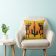 Este travesseiro quadrado apresenta um design amarelo, laranja e preto no sudoeste.