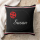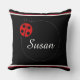 Este travesseiro de padrão vermelho e preto é fofo com o sotaque de ladybug. Personalize com seu nome ou outro texto para este travesseiro decorativo de destaque.