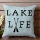 Nosso travesseiro personalizado se adornou com as palavras "Lake Life" em preto sobre um fundo azul/verde macio. Veja nossa linha de produtos de cheio em nossa loja Zazzle.