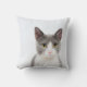 Um doce e um gato adorável do smoking das cinzas e do branco enfeitam este travesseiro decorativo macio, retangular. Apenas olhe esse nariz cor-de-rosa adorável!! Estará sempre feliz olhar a televisão com você.