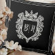 Travesseiro Preto com Crista e Iniciais de Casal. Este travesseiro preto e branco é elegante e sofisticado.