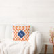 Padrão de quatrefoil branco e laranja monograma com azul real. Padrão de quatrefoil laranja em branco.