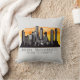 Almofada decorativa apresenta a silhueta da linha do horizonte da cidade de Boston Massachusetts com respingo de aquarela de pôr do sol e coordenadas de mapa de latitude e longitude