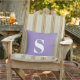 Lavanda Roxa, Monograma Inicial Ao Ar Livre. Travesseiro ao ar livre decorativo com solteiro inicial. Personalize rápida e facilmente.
