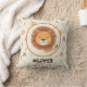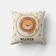 Este travesseiro decorativo de berçário personalizado apresenta um desenho bonito, caprichoso e divertido de um leão sorridente com uma cabeça super-dimensionada engraçada.