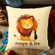 Adicione um toque de aventura ao quarto do seu filho com esta charmosa almofada de lançamento com um leão lúdico e um pinguim duplo. A única mensagem "Selva e Gelo" e o fundo pastel quente tornam esta almofada perfeita para criar uma atmosfera acolhedora e divertida em qualquer quarto de berçário ou infantil. Um excelente no espaço do seu filho, combinando a magia do selvagem com o ártico.