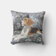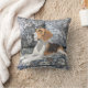 Este coxim quadrado bonito do lance caracteriza minha pintura de um lebreiro de reclinação em um sofá floral azul.