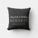 Projete seu próprio travesseiro chique da lembrança do monograma do casamento com nome personalizado e a data do casamento personalizou os nomes dos noivos no roteiro de prata cinzento do olhar e o sobrenome abaixo em tradicional todos os capitais. Data wedding personalizada abaixo na rotulação moderna cinzenta. O fundo preto com confetes da folha do brilho da prata do falso pontilha na parte superior. Os confetes de harmonização do brilho do preto e da prata olham acentos sobre para trás. Adicione todo o texto que feito sob encomenda você desejar. Decoração original da lembrança do casamento para o quarto chique ou a casa. Presente personalizado do chá de casamento para os newlyweds. Nós temos outros travesseiros da lembrança do casamento e a decoração preta e de prata em nossa loja angela65 de Zazzle.