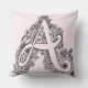 Letra monográfica Um travesseiro desenhado à mão rabiscada. Ideal para colorir, bordar ou apenas guardar como um esboço mono-lett A design. A cor de fundo pode ser alterada se for necessário para a rosa claro atual. © Desenho de tinta original, flores começando com A como azalea, alison e asters, formigas coletoras de folhas, bolotas e maçãs, arte e design por Sarah Trett. www.sarahtrett.com para www.mylittleeden.com