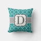 Almofada Letra azul D Quatrefoil do monograma da cerceta