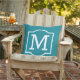 Na moda e travesseiro clássico de sotaque ao ar livre apresenta uma inicial de monograma com uma simples estrutura decorativa em cor branca com cor azul verde-lacrimogêneo. Personalize o plano de fundo para coordenar com a decoração exterior.