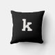 Almofada Letra Lowercase k do travesseiro preto e branco do