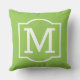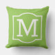 Na moda e travesseiro clássico de ênfase exterior quadrado apresenta uma inicial de monograma com uma simples estrutura decorativa em cor branca com cor de fundo do verde limão. Personalize o plano de fundo para coordenar com a decoração exterior.