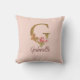 Almofada Letra Personalizada G Dourado Folha Rosa Bege Rosa