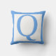 Letra Q. Lindo travesseiro com monograma (inicial única). A borda e a letra única são feitas em azul bebê.