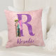 A letra R do shimmer roxo com fada de rico rosa-rosa fantasiada de ator vintage com recorte de fotos e texto roxo personalizável pode ser usado para adicionar um nome ou mensagem. (Ou remover completamente para deixar design como uma letra/monograma ilustrado.) Um travesseiro decorativo com uma compilação encantadora para aqueles que amam campy arte alterada num fundo rosa angustiado