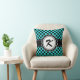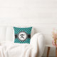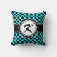 Bolinhas retros preto e branco elegantes do estilo com seu monograma no centro. A letra customizável no monograma, e a cor do fundo (atrás das bolinhas) podem ser mudadas. Mostrado aqui como um travesseiro reversível com rosa em uns lado e aqua no reverso.