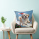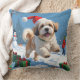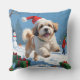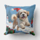 Almofada Lhasa Apso Correndo em Neve com Chapéu de Natal