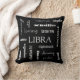 Um legal travesseiro com os diferentes temperamentos de uma Libra. As costas têm o símbolo Libra. Faria um excelente adicional ao seu decoro doméstico ou um presente de excelente.