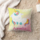 Um belo travesseiro decorativo de unicórnio chamado kawaii, esta beleza apresenta um fundo cor-de-rosa macio e amarelo com um unicórnio dormindo na frente. O dorso exibe um belo arco-íris. Personalize o nome na frente. Personalize o seu hoje! Arte Unicórnio e arco-íris: design Prettygrafik (https://www.etsy.com/shop/Prettygrafikdesign) Cor de fundo por Huckleberry Hearts, LLC, © www.Huckleberry-Hearts.com