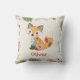 Esta almofada personalizada apresenta uma raposa encantadora e caprichosa criada em um estilo de patchwork. A raposa é projetada com uma mistura de tecidos coloridos e estampados, incluindo bolinhas, listras e texturas frondosas.