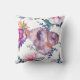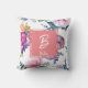 Frente: Um selo de monograma. Enquadrada no centro está a primeira letra do seu nome em branco contra rosa claro, com o seu primeiro nome abaixo em um tamanho muito menor. Todas as letras são cursivas. O fundo da almofada, frente e verso: várias flores coloridas diferentes. As flores são desenhadas à mão a partir do Watercolor Stock da Etsy.
