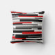 Um design simples do preto, do branco e de linhas horizontais cinzentas com um acento vermelho. Este travesseiro olhará grande em uma decoração contemporânea ou moderna.
