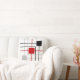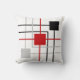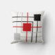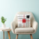 Cinzas pretas modernas, linhas vermelhas e quadrados no Travesseiro decorativo branco de fundo.