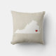 Travesseiro do estado de Virgínia com o coração colocado para a cidade natal. Você pode personalizar a colocação do coração para cidades natais diferentes. Fundo de linho da farinha de aveia do falso com estado branco e coração vermelho. Faz um grande casamento ou um presente home novo!