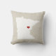 Travesseiro do estado de Minnesota com o coração colocado para a cidade natal. Você pode personalizar a colocação do coração para cidades natais diferentes. Fundo de linho da farinha de aveia do falso com estado branco e coração vermelho. Faz um grande casamento ou um presente home novo!