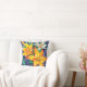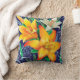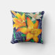 Belo travesseiro decorador desenhado com lírios cor de laranja e creme num fundo azul marinho.