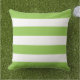 Uma almofada externa ousada com listras horizontais largas vibrantes verde lima e branco. O padrão de listra de cabana animada traz um estilo fresco e enérgico para móveis de pátio, bancos de jardim ou cadeiras à beira da piscina. Um acento divertido que adiciona um toque brilhante de cor a qualquer arranjo externo.