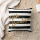 O bonito do cumprimento "olá!" rendido no ouro do falso faz uma impressão contra o contraste de listras preto e branco neste travesseiro. Uma maneira bonito de impulsionar a confiança.