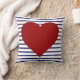 Listras de azuis marinhos no travesseiro branco, com um grande coração do vermelho carmesim. Parte do "Hooray para" a coleção branca & azul vermelha. A decoração Home com um toque da americana, tudo em uma paleta de cores similar, assim que você pode misturar e combinar facilmente!