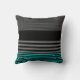 Um travesseiro formal da forma dos homens com cerceta fresca e listras pretas no teste padrão listrado preto e cinzento inferior e na moda no resto do travesseiro. Personalize adicionando seu nome a este travesseiro moderno do deco do estilo contemporâneo.