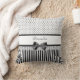 Um travesseiro preto e branco do teste padrão do estilo feminino do Victorian com as bolinhas chiques na parte superior, listras à moda na parte inferior. Personalize este grupo elegante adicionando seu nome ao divisor do laço do ilhó embellished com uma fita preta na moda amarrada em um arco. Imagem impressa do plano, laço nao real.