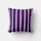 Um travesseiro decorativo decorativo com um inclinação roxo e um teste padrão listrado preto.