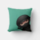 O adorável chubby, mas assustador, pequeno ninja está vestido de roupa preta e carregando katana - espada tradicional japonesa.