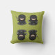 Travesseiro decorativo/almofada com quatro pequenos ninjas bonitinhos num fundo verde. Você pode alterar a cor de fundo clicando no botão 'personalizar'.