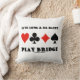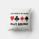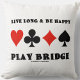 Mostre seu lado da ponte trivial/duplicado com uma dose de conselho de ponte sonora com este presente de travesseiro com os quatro naipes de placa junto com o ditado "Live Long & Be Happy Play Bridge".
