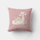 Lama branca adorável e doce com flores em travesseiro decorativo rosa para o berçário. Adicione o nome dos bebês ao travesseiro de ambos os lados. A imagem está em ambos os lados e também pode ser personalizada.