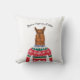 Engraçado travesseiro decorativo de Natal Feriado com um Llama vestindo um doce nórdico de Natal "Feio" contra um fundo branco de inverno. Na verdade, achamos que ele é preferencialmente fofo! Adicione o texto personalizado acima ou exclua. Faz um presente perfeito de Natal e aniversário de inverno para amantes de Llama. Excelente também para festas de natal de elefante branco ou de troca de presentes de Papais noeis secretos.