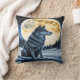 Um lobo impressionante olha serenamente para uma lua luminosa de cheio, cercado por paisagens de neve e florestas densas, evocando uma sensação de natureza selvagem e tranquilidade.