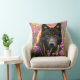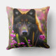 Almofada Lobo negro em flores cor-de-rosa