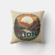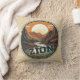 Na moda travesseiro decorativo apresenta um retrorreflector redondo gráfico do Zion National Park em Utah, em um fundo falso de burlap.